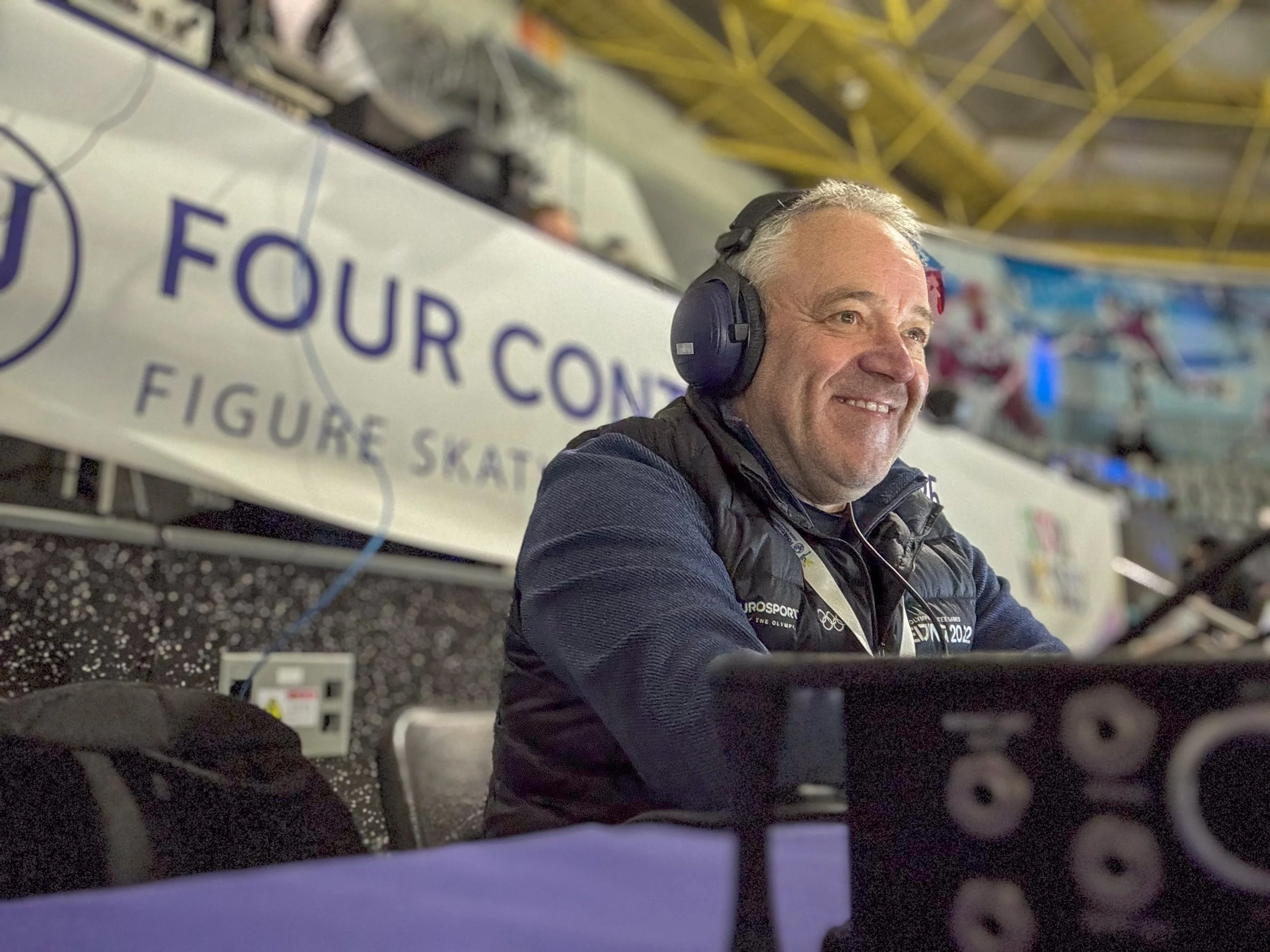 Chris’s skating career also included time living in the Netherlands, and in 2005 he moved to the United States. Alongside his competitive and coaching career, he became a respected broadcaster, covering figure skating, short track, and speed skating for EuroSport and Olympic Broadcasting Services. Today, he continues to share his voice and expertise with audiences as part of Peacock’s figure skating coverage.